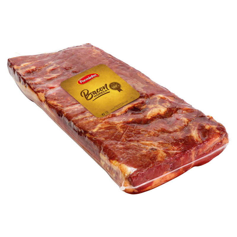 INGREDIENTES: – Carne de suíno (origem UE), água, sal, dextrose, proteína de carne, estabilizador (E451), regulador de acidez (E261), gelificante (E407), aromas, antioxidante (E316), especiarias e conservante (E250).